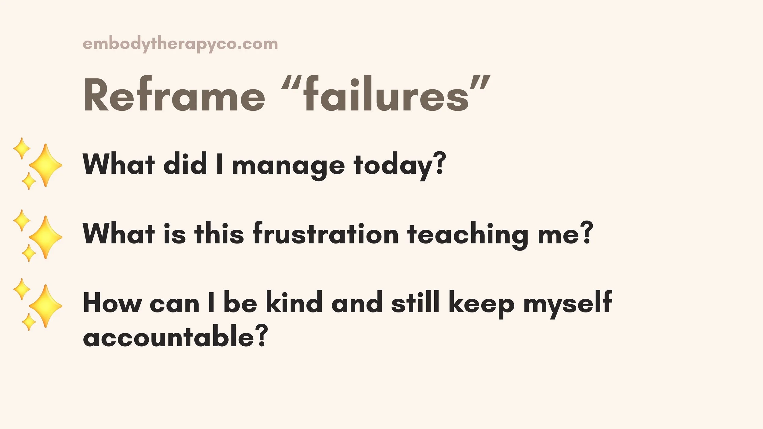 Instead, try reframing "failure" by recognising the lessons learned. Maybe your shortcomings are improving slowly. Or you’re more self-aware of what you’re working on.